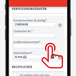 Verifizierung JobTicketBei JobTicket-Verträgen werden stattdessen deine Chipkarten- und Großkundennummer sowie dein Geburtsdatum abgefragt.